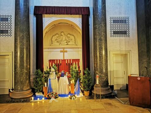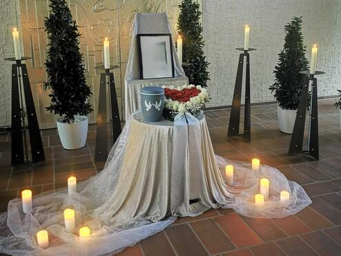 Eine stimmige Raumgestaltung schafft eine Atmosphäre der Ruhe, Würde und des Gedenkens und unterstreicht den feierlichen Charakter der Zeremonie.