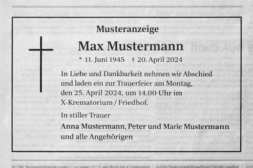 Beispiel Traueranzeige